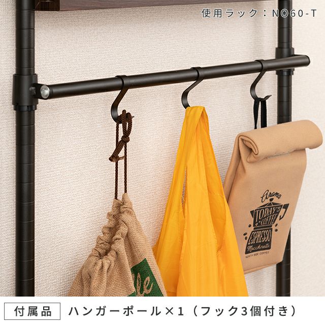 L字型木製棚×1 パンチングボード×1 ハーフウッドシェルフ×1 ハンガーポールセット×1(ネジ、ワッシャー、リング付属) ポール(3分割:テンションポール、中部ポール、下部ポール)×各2 テンションポール用ネジとワッシャー×6 S字フック×3 スリーブ×10(予備1組) 円形アジャスター×2 |