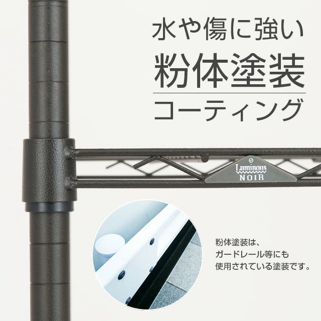 全体:25kg、ハーフウッドシェルフ:5kg、L字型木製棚:5kg、パンチングボード:5kg、ハンガーポール:10kg ※値はシェルフ全面に均等に荷重をかけた場合の値になります。 |
