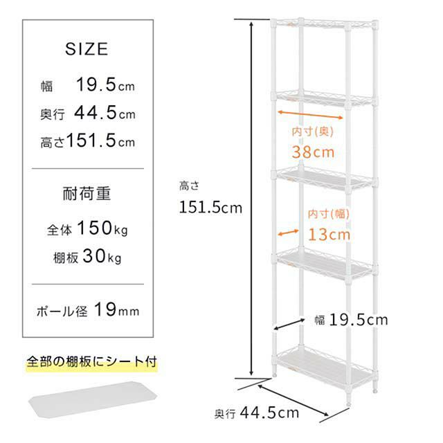 外形寸法 (約)幅19.5×奥行44.5×高さ151.5cm