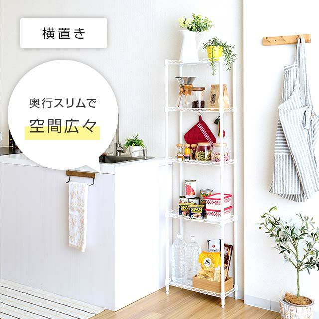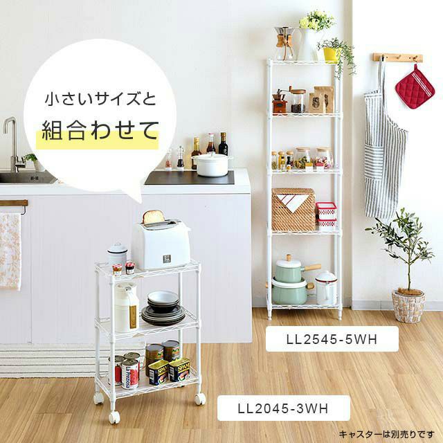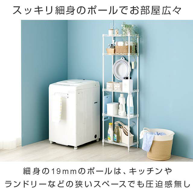 キッチンラック 幅20cm 5段 ルミナスラテ すき間収納ラック 幅19.5×奥行44.5×高さ151.5cm LL2045-5WH