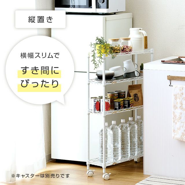 キッチンラック 幅20cm 4段 ルミナスラテ すき間収納ラック 幅19.5×奥行59.5×高さ90.5cm LL2060-4WH