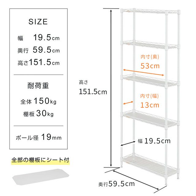 外形寸法 (約)幅19.5×奥行59.5×高さ151.5cm