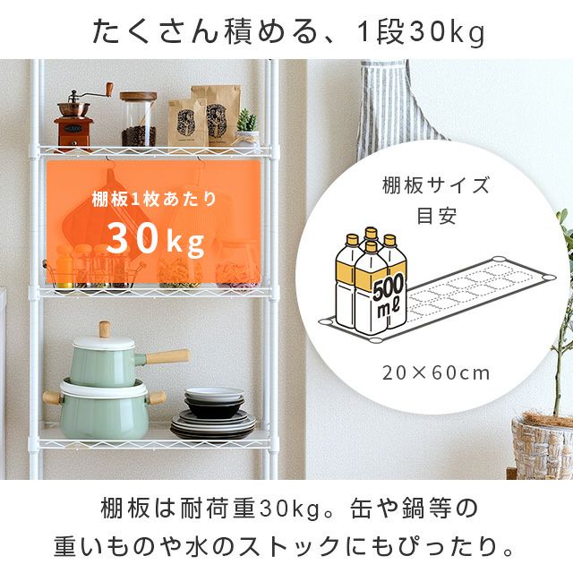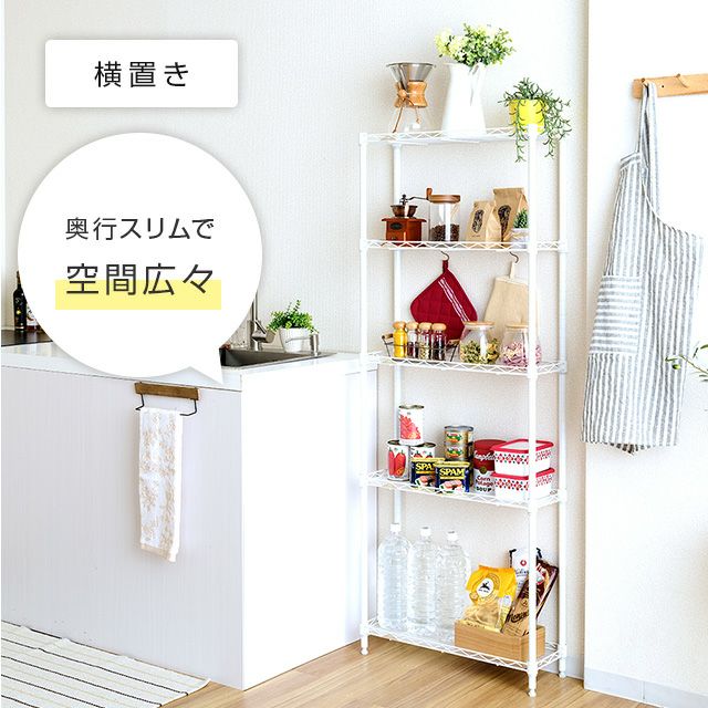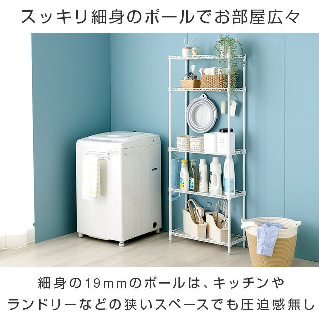 キッチンラック 幅20cm 5段 ルミナスラテ すき間収納ラック 幅19.5×奥行59.5×高さ151.5cm LL2060-5WH