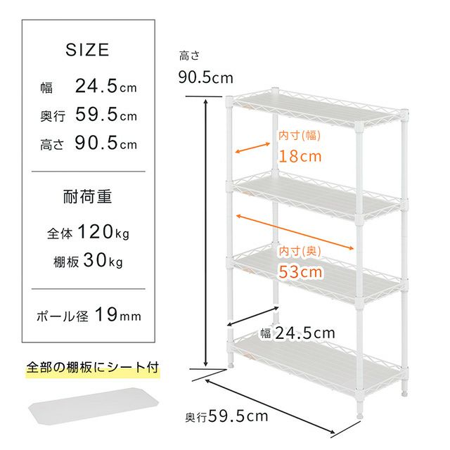 外形寸法 (約)幅24.5×奥行59.5×高さ90.5cm