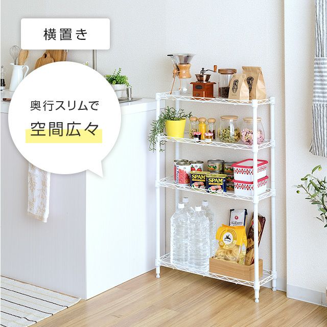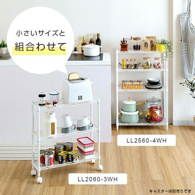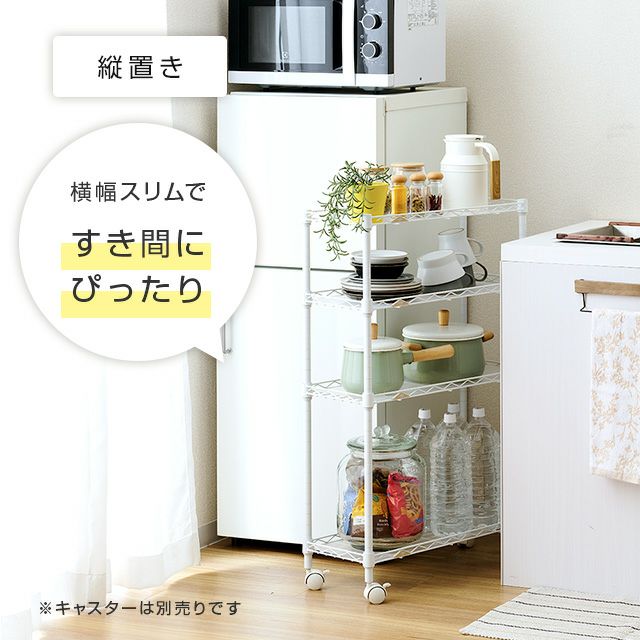 キッチンラック 幅25cm 4段 ルミナスラテ すき間収納ラック 幅24.5×奥行59.5×高さ90.5cm LL2560-4WH