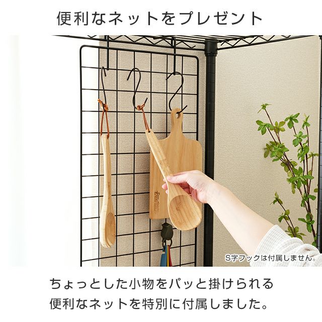 材質 シェルフ(棚板)・ポール・ワイヤーバー・スライドシェルフ・ネット:スチール