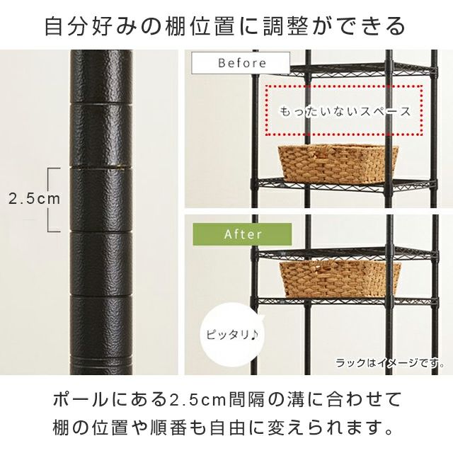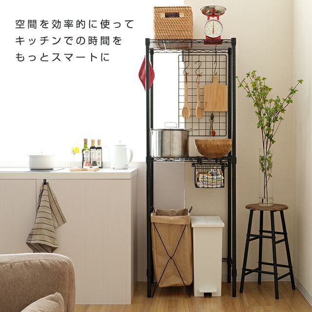 キッチンラック 幅60cm 2段 ルミナスノワール スチールラック 幅61×奥行41×高さ174cm NO6017-2K