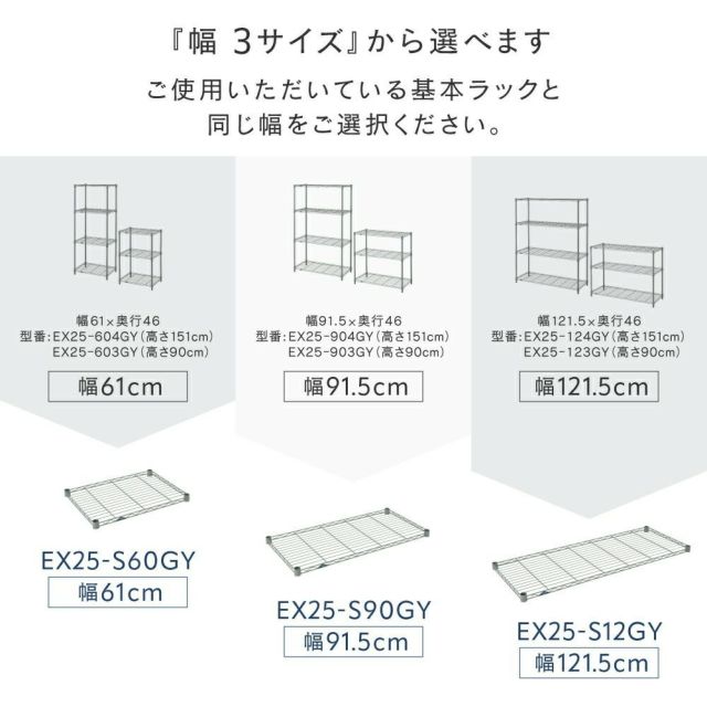 スチールシェルフ 幅121.5×奥行46cm グレー ルミナスEX スチールラック パーツ 棚 ポール径25mm用 幅120cm EX25-S12GY
