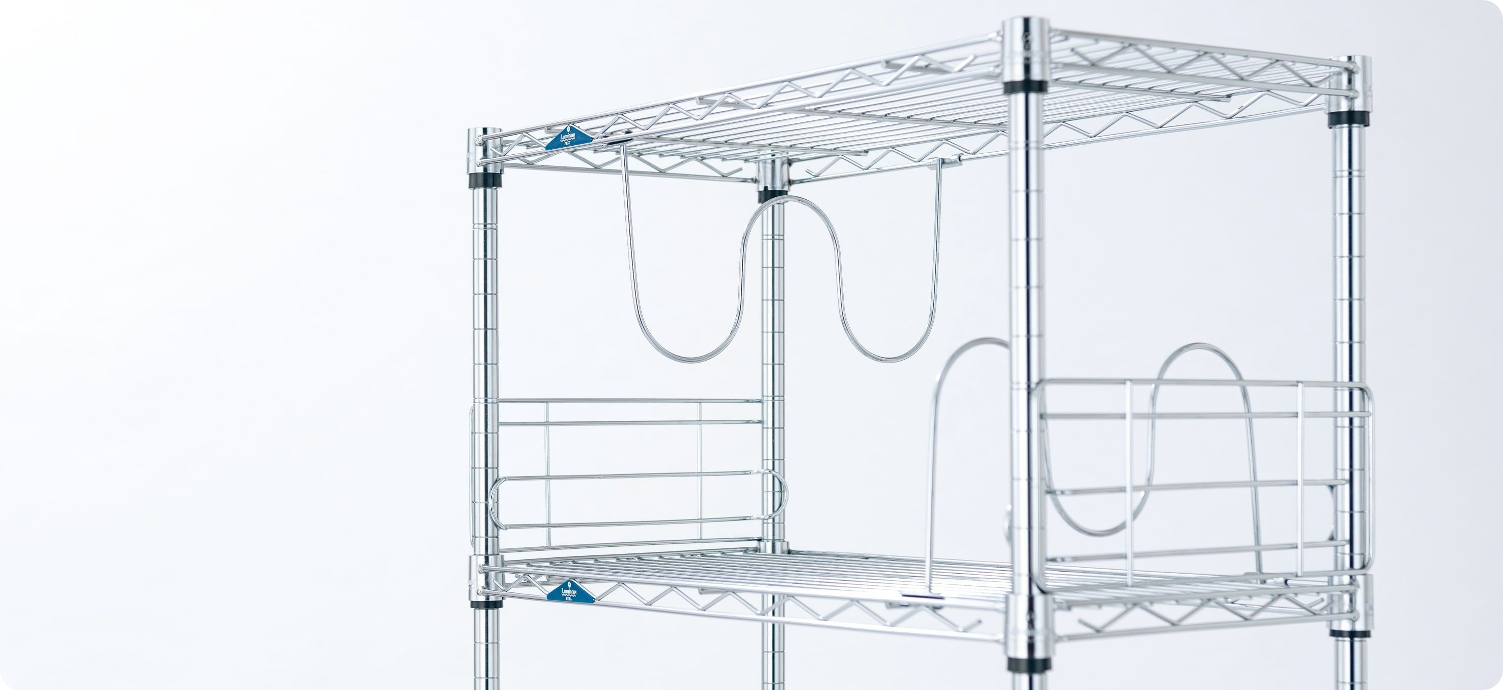 用途に特化した特別なスチールラックキッチンや、本・書類整理でご使用にぴったりのオリジナルパーツが付属。