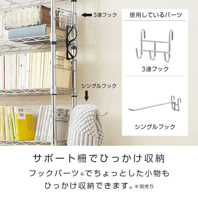 シェルフ、ポール、サポート柵、ディバイダ:スチール(クロームメッキ) スリーブ:ABS樹脂円形 アジャスター:表面 スチール(クロームメッキ) 設置面ポリプロピレン テンション部分:ポリプロピレン、ABS樹脂 |