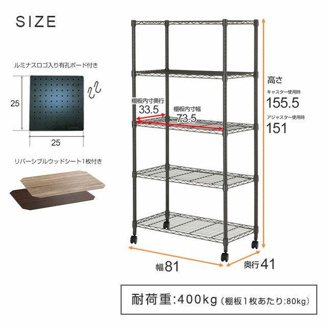 幅81×奥行41×高さ150.7cm(アジャスター装着時)、高さ155.5cm(キャスター装着時)