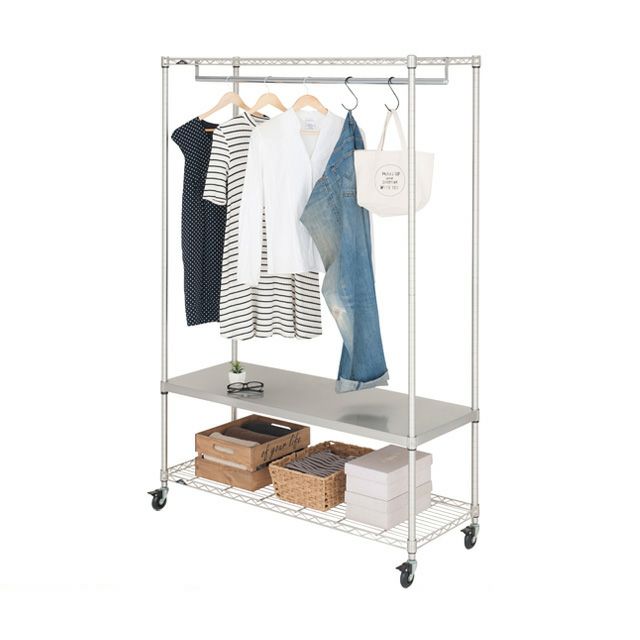 スチールシェルフ(棚板):スチール ポール:スチール ハンガーポール:スチール キャスター車輪部:ポリウレタン スリーブ:ABS樹脂 |