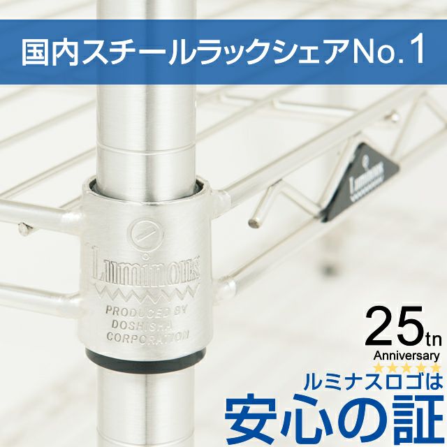 一部ルミナス製品との互換性あります。 ※棚板、延長ポール、補強パーツの取付けはできません。 ※キャスターご使用時は定期的に緩みがないか点検をお願いいたします。
