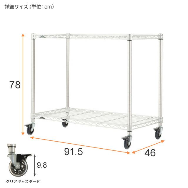 スチールシェルフ(棚板):スチール ポール:スチール キャスター車輪部:ポリウレタン スリーブ:ABS樹脂 |