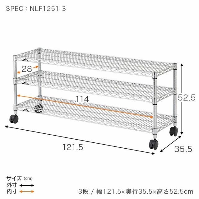 キャスター使用時:幅121.5×奥行35.5×高52.5cm