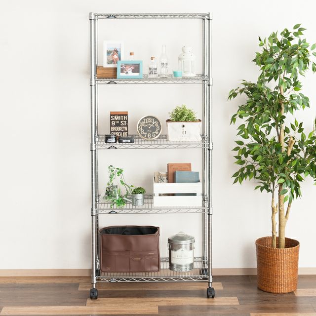 | 材質 | スチールシェルフ(棚板)・ポール:スチール(クロームメッキ) ナイロンキャスター:ナイロン樹脂 スリーブ:ABS樹脂 |