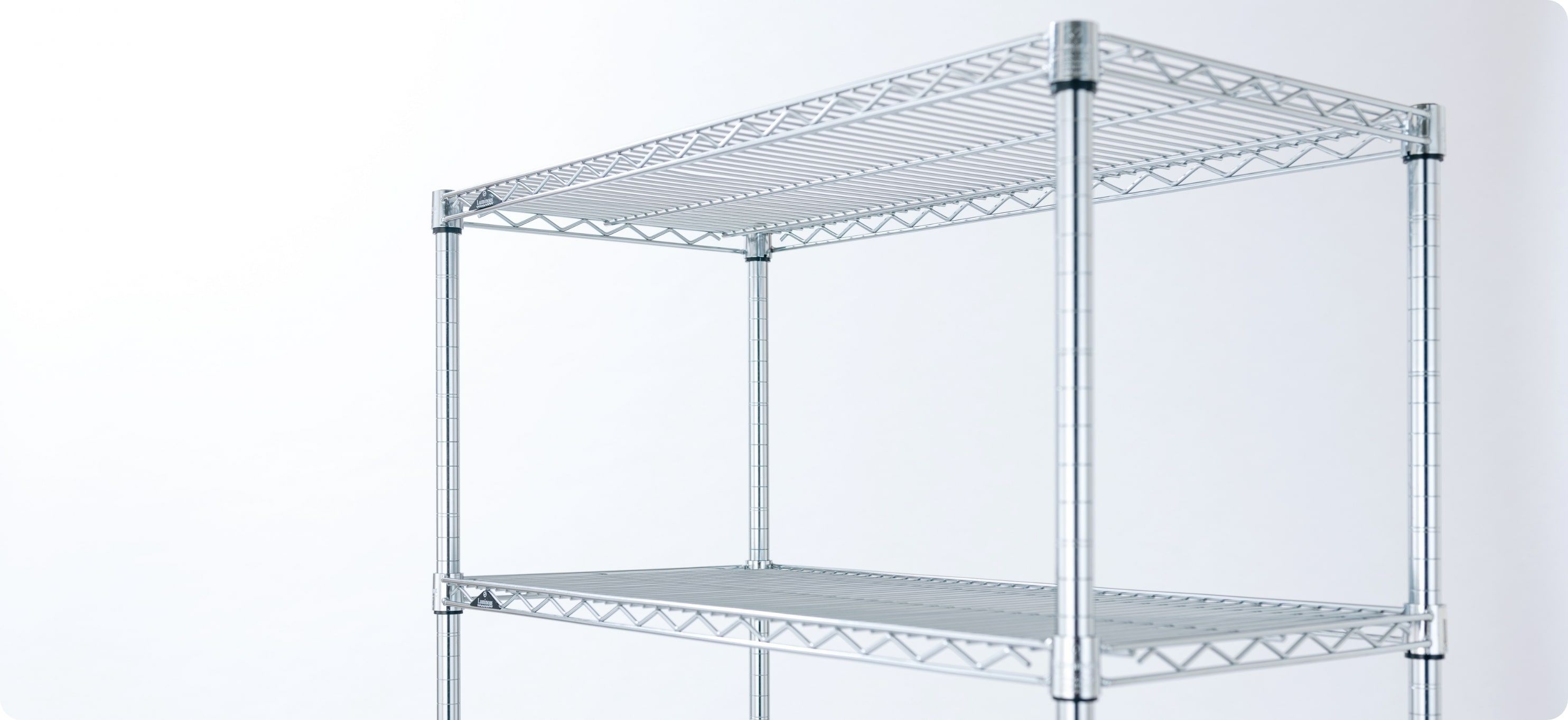 レギュラーシリーズのスチールシェルフは、1枚あたりの耐荷重が約250kg。収納する物を選ばず、業務用などタフな環境でも安心して使用することが可能です。