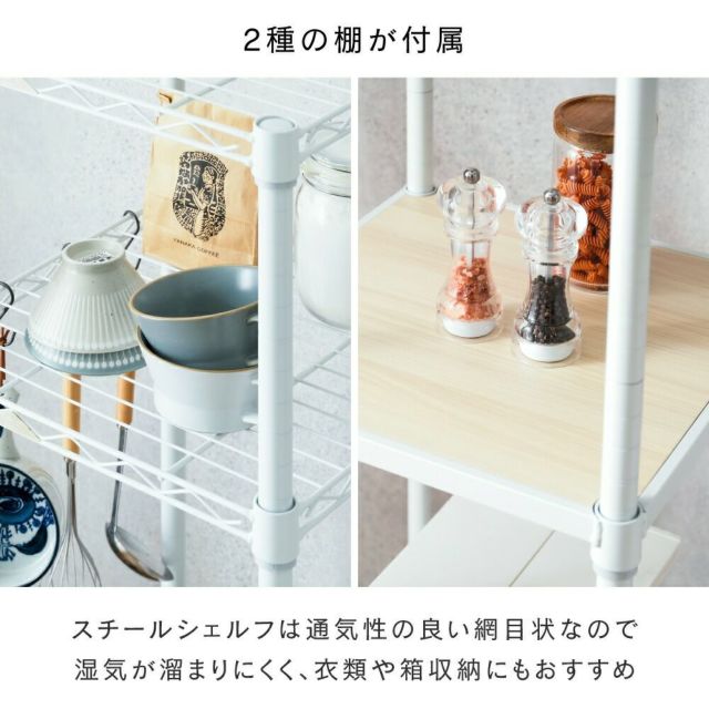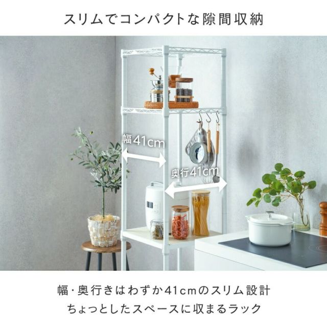 キッチンラック 幅40cm 3段 ルミナスラテ スチールラック ホワイト 幅41×奥行41cm×高さ174cm LL4018-KB