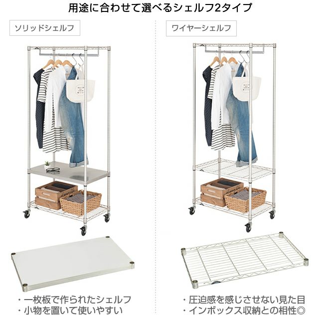 | 材質 | スチールシェルフ(棚板):スチール ポール:スチール ハンガーポール:スチール キャスター車輪部:ポリウレタン スリーブ:ABS樹脂 |