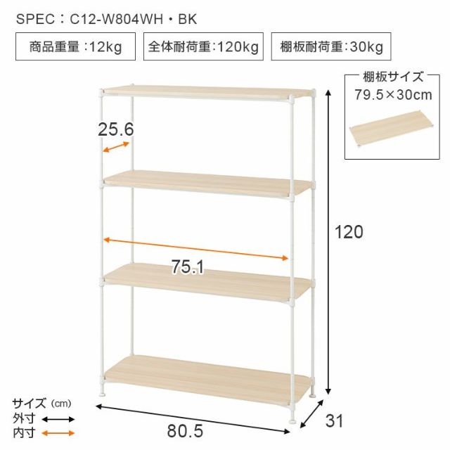 アジャスタ装着時:幅80.5×奥行31×高さ120cm |