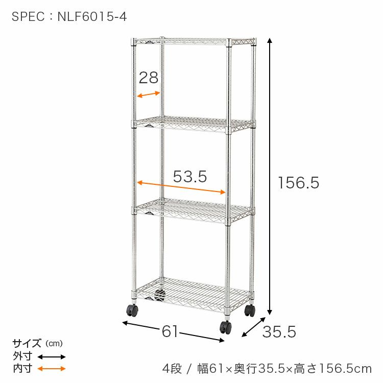 他の画像を見る 交換保証対象品 送料無料 ネット限定 スチールラック 幅60cm 4段 ルミナスレギュラー 幅61×奥行35.5×高さ156.5cm NLF6015-4 ¥ 11,800 税込 カートに入れる