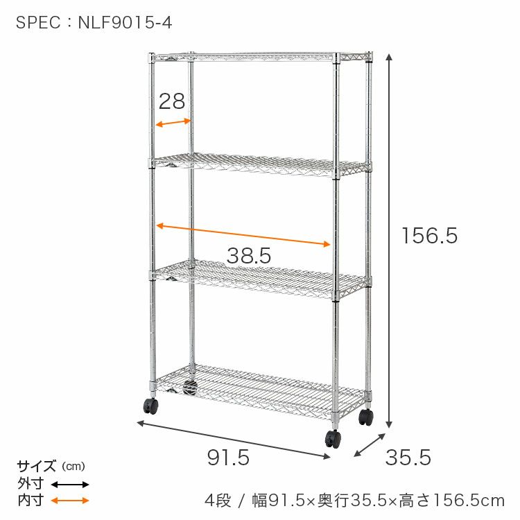 他の画像を見る 交換保証対象品 送料無料 ネット限定 スチールラック 幅90cm 4段 ルミナスレギュラー 幅91.5×奥行35.5×高さ156.5cm NLF9015-4 ¥ 14,480 税込 カートに入れる