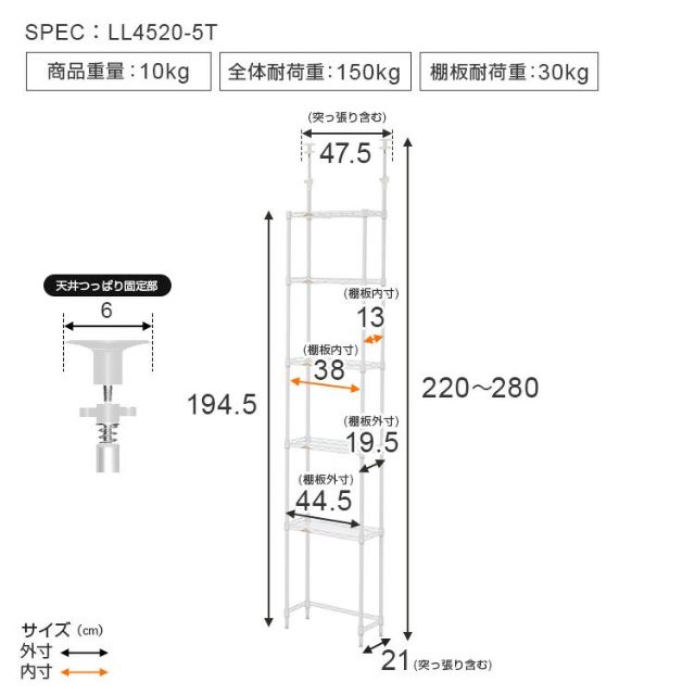 幅47.5×奥行21×高さ220~280cm |