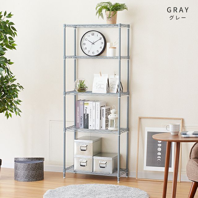 スチールシェルフ(棚板)×5枚 スリーブ(棚取付用部品)×20組(+予備1組) ポール×各4本 標準アジャスター |