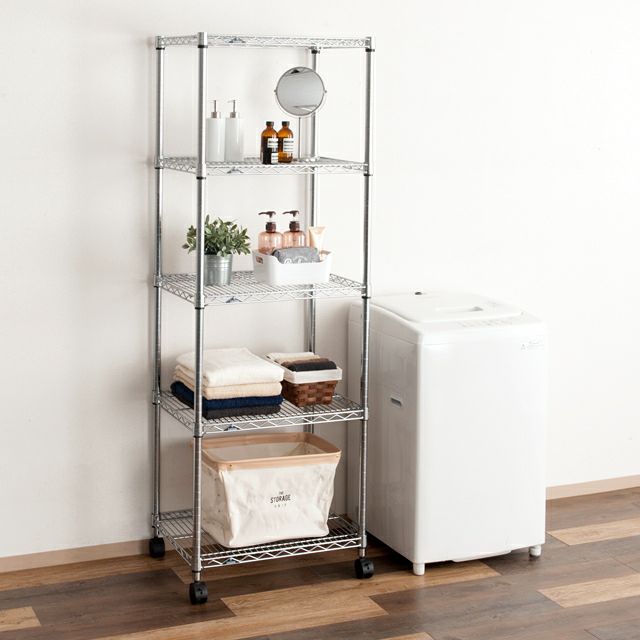 | 材質 | スチールシェルフ(棚板)・ポール:スチール(クロームメッキ) ナイロンキャスター:ナイロン樹脂 スリーブ:ABS樹脂 |