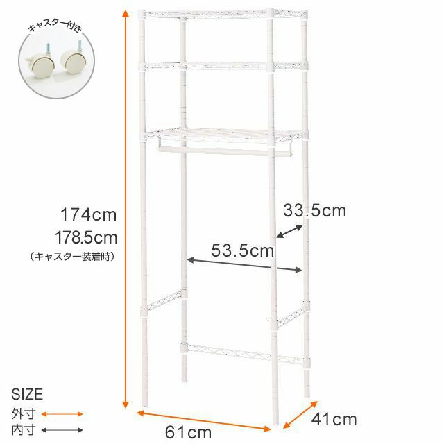 幅61×奥行41×高さ174cm キャスター装着時の高さ:178.5cm |