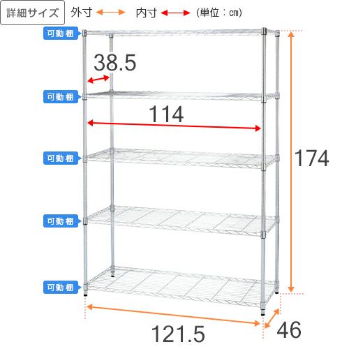 | シェルフ内寸 | 幅114×奥行38.5cm |