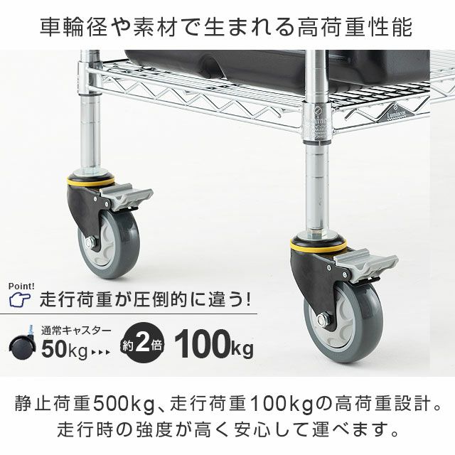 約100kg(ネジ式ウレタンキャスター走行荷重)