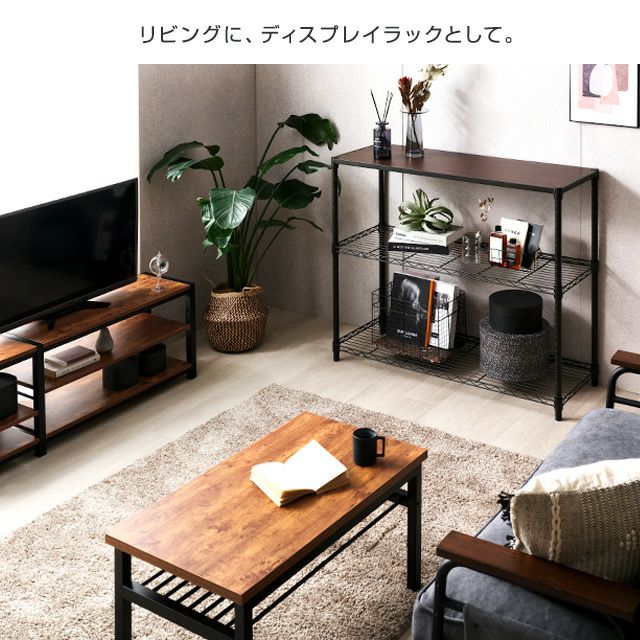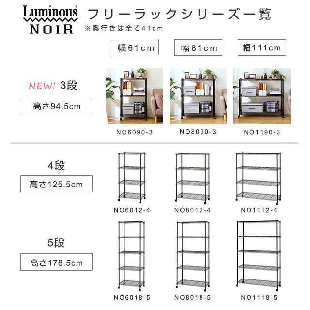 スチールラック 幅110cm 3段 ルミナスノワール 幅111×奥行41×高さ94.5cm NO1190