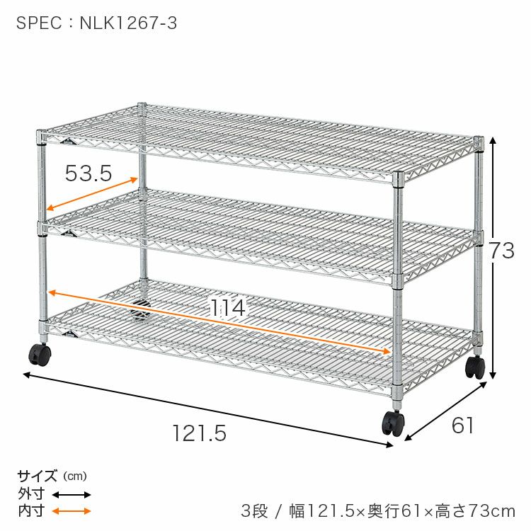 他の画像を見る NEW 交換保証対象品 送料無料 ネット限定 ルミナスレギュラー 幅121.5cm 奥行61cm 高さ73cm NLK1267-3 スチールラック 幅120cm 3段 ルミナスレギュラー 幅121.5×奥行61×高さ73cm NLK1267-3 ¥ 26,800 税込