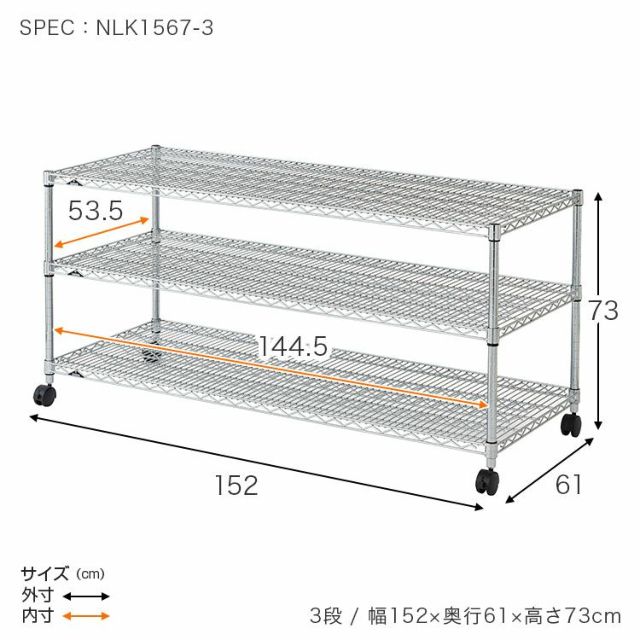 アジャスター使用時:幅152×奥行61×高67.5cm |