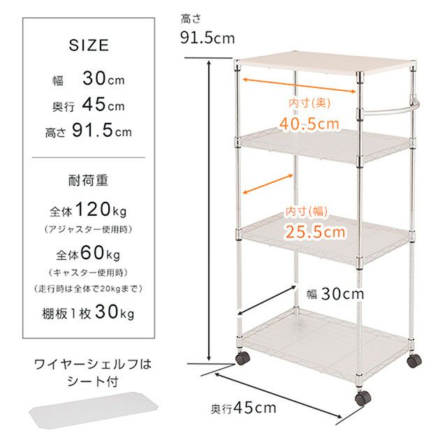 幅30×奥行45×高さ91.5cm ※高さはキャスター装着時の値です。 |