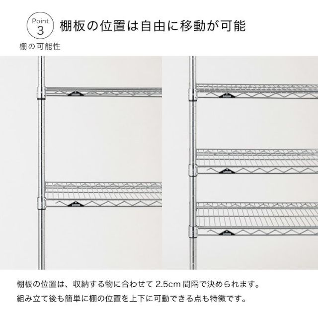 スチールシェルフ(棚板)・ポール:スチール(クロームメッキ)