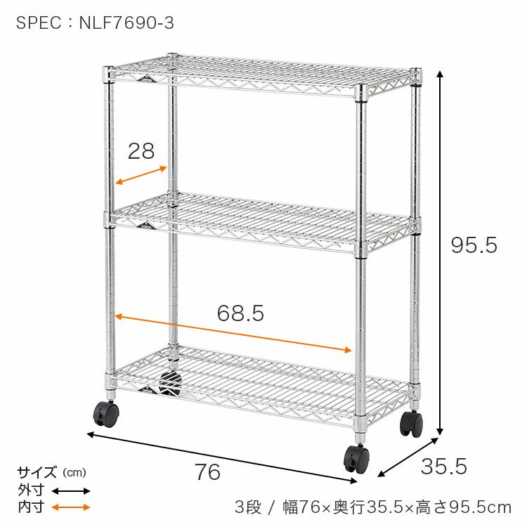 他の画像を見る 交換保証対象品 送料無料 ネット限定 スチールラック 幅75cm 3段 ルミナスプレミアム 高度防錆素材 ワイヤー棚 幅76×奥行46×高さ78cm ZWH-76703 ¥ 19,800 税込