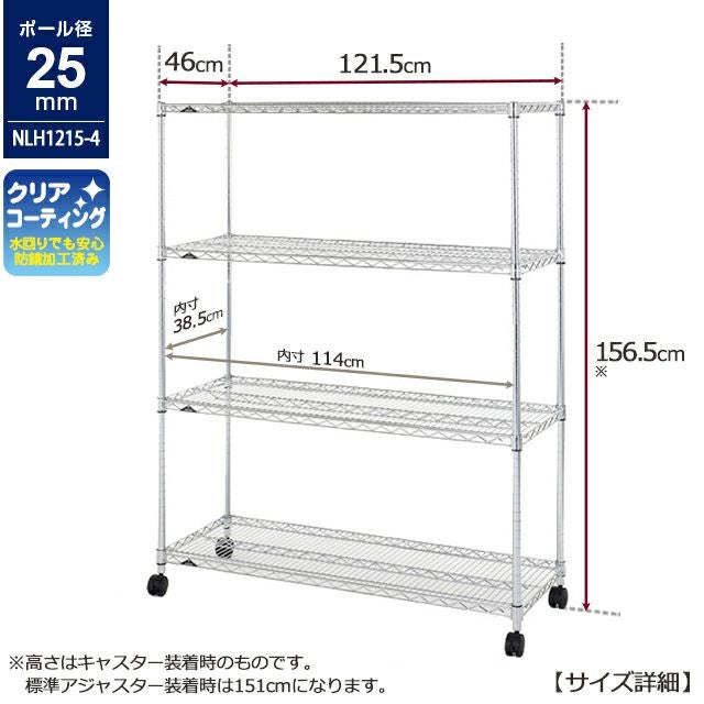 | 外形寸法 | アジャスタ装着時:幅121.5×奥行46×高さ151cm |
