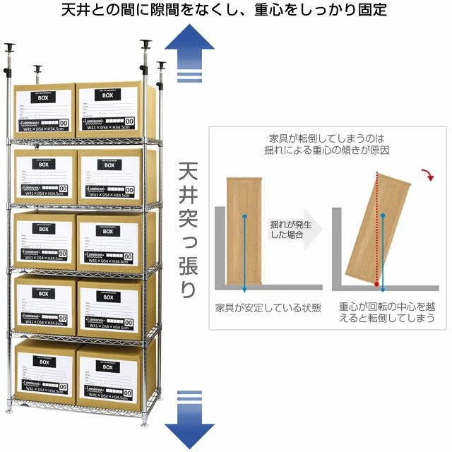 | セット内容 | スチールシェルフ(棚板)×5枚 スリーブ(棚板取付用部品)×20組 ポール×4本 テンションパーツ×4本 円形アジャスター×4個 |