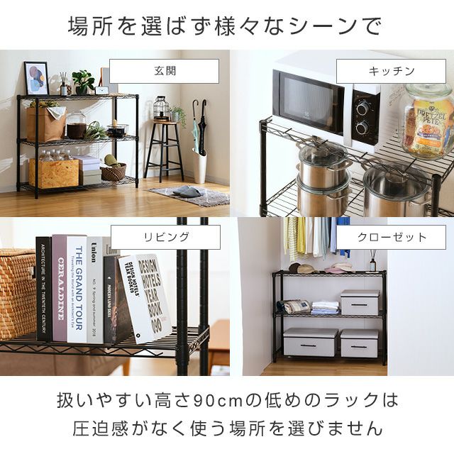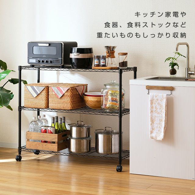 スチールラック 幅110cm 3段 ルミナスノワール 幅111×奥行41×高さ94.5cm NO1190