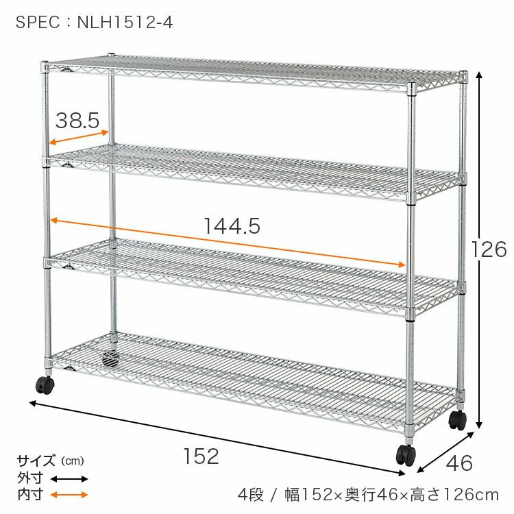 他の画像を見る 交換保証対象品 送料無料 ネット限定 ルミナスレギュラー 幅155cm 奥行48.5cm 高さ161cm NLH1515-4BKN2 スチールラック 幅150cm 4段 ルミナスレギュラー 高荷重エラストマーキャスター 幅155×奥行48.5×高さ161cm NLH1515-4BKN2 ¥ 40,560 税込