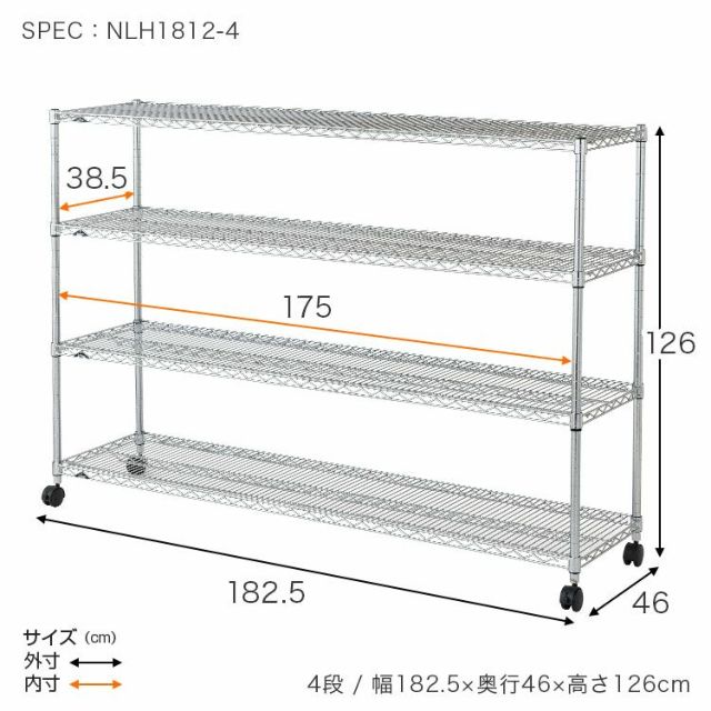 アジャスター使用時:幅182.5×奥行46×高121cm |