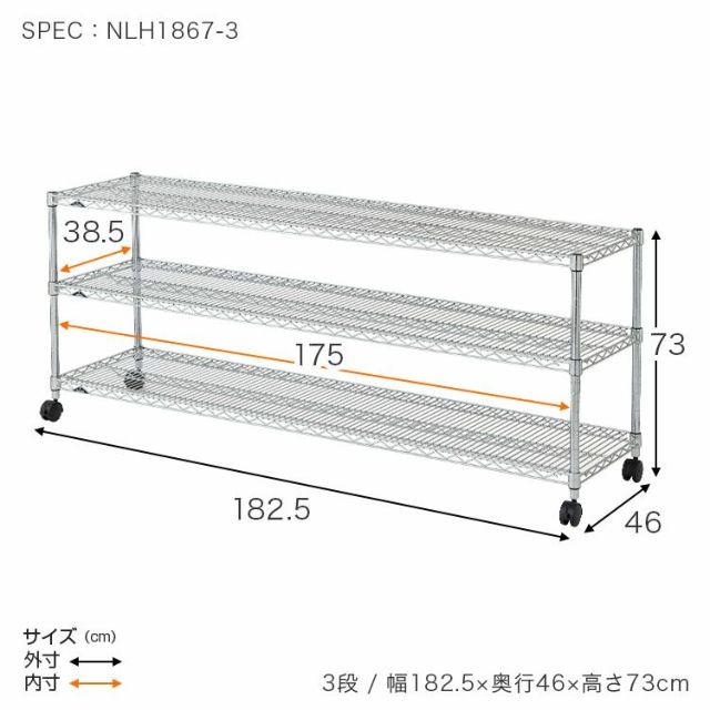アジャスター使用時:幅182.5×奥行46×高67.5cm |