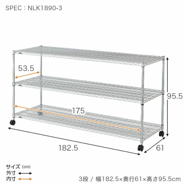 キャスター使用時:幅182.5×奥行61×高95.5cm
