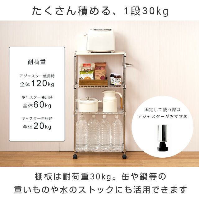 30kg ※値はシェルフ全面に均等に荷重をかけた場合の値になります。 |