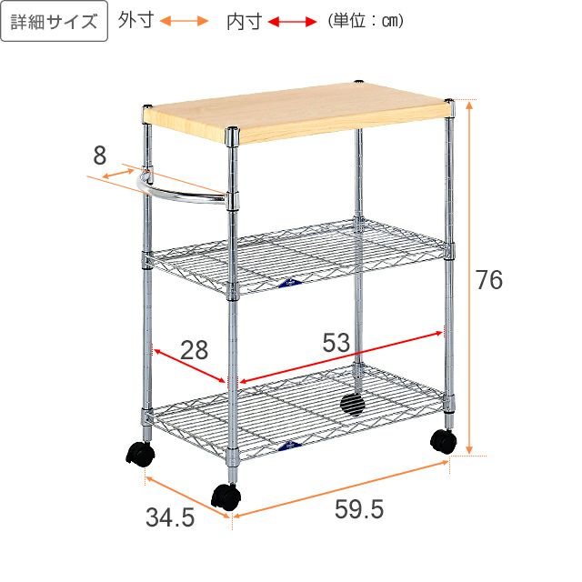 材質 | スチールシェルフ(棚板)・ポール:スチール(クロームメッキ) 木製棚:MDF中質繊維板 ナイロンキャスター:ナイロン樹脂 スリーブ:ABS樹脂 |