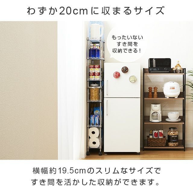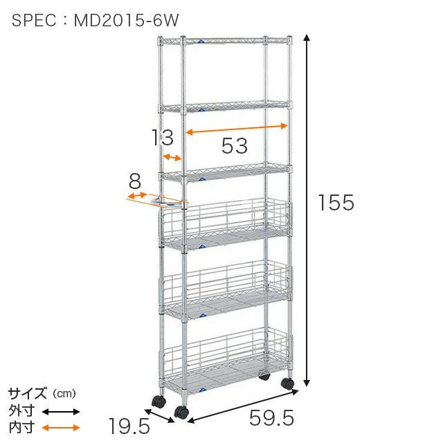 他の画像を見る 交換保証対象品 送料無料 ルミナスフィール 幅19.5cm 奥行59.5cm 高さ155cm MD2015-6W キッチンラック 幅20cm 6段 ルミナスフィール 隙間収納 幅19.5×奥行59.5×高さ155cm MD2015-6W ¥ 12,800 税込