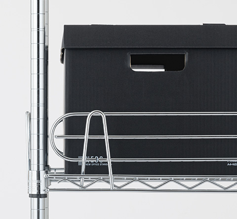 重さがあるものや、不定形なものも、倒れず定位置に収容できてラックの使い勝手が格段に向上します