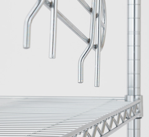 ・シェルフの上部(裏側)から取り付ければ立てかけ収納のサポートに